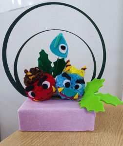 事務所の前には、👹と鰯の置物を飾っています。今年は、毎月、こんな置物を作って皆様の目の保養になればと思っています(#^.^#)